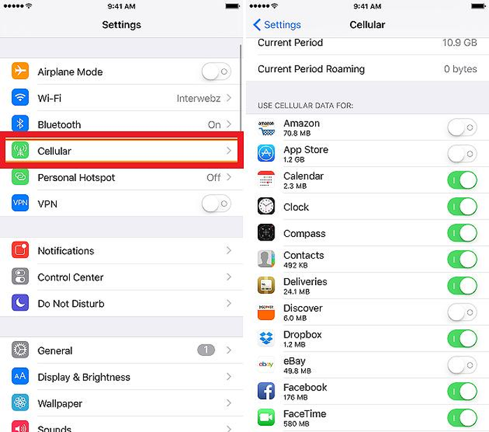 Để thực hiện bạn cần vào Cài đặt (setting) > Di động (Cellular), kéo xuống và chọn ứng dụng nào bạn muốn tắt rồi chuyển từ On sang Off. Bằng cách này bạn có thể tắt quyền truy cập dữ liệu di động của những ứng dụng sử dụng nhiều dữ liệu để tiết kiệm tiền cước 3/4G.