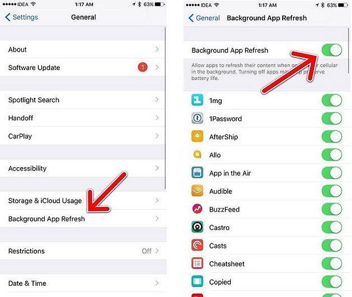 Bạn cần vào Cài đặt (setting) > Cài đặt chung (General) > chọn Tự động làm mới trong nền (Background App Refresh) sau đó tắt từng ứng dụng. Những ứng dụng bị tắt sẽ không thể tự cập nhật thông tin cho bạn cho đến khi bạn mở nó.