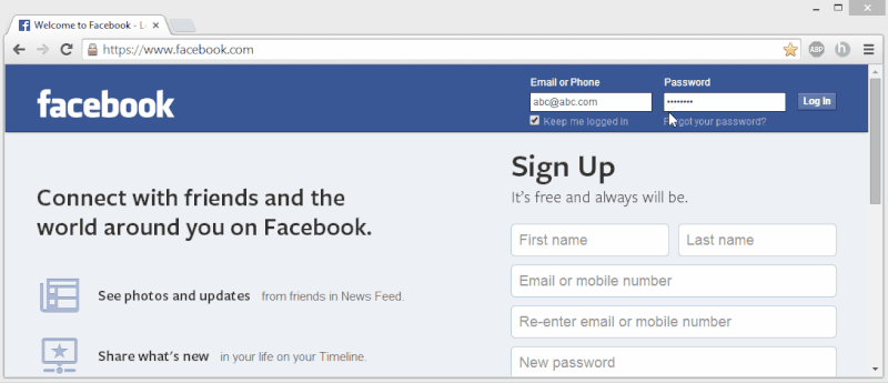 Phishing (giả mạo) là cách đánh cắp mật khẩu Facebook phổ biến nhất mà các hacker thường sử dụng. Với Phishing, chúng sẽ tạo ra một trang đăng nhập Facebook giả rồi lừa bạn nhập địa chỉ email và mật khẩu Facebook của mình. Sau khi bấm đăng nhập, các thông tin trên sẽ được gửi về máy tính của hacker và tất nhiên chúng sẽ đăng nhập được vào Facebook của bạn bằng địa chỉ email và mật khẩu đó.