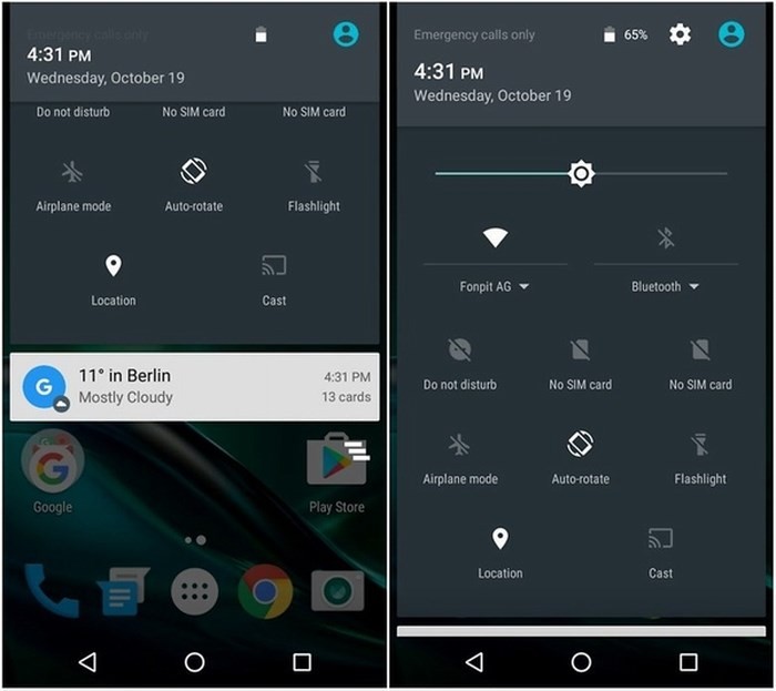 2. Trượt hai ngón tay xuống để truy cập trực tiếp vào cài đặt nhanh: Để tránh phải đi vào các thông báo và truy cập nhanh menu phím tắt, chỉ cần trượt hai ngón tay từ trên xuống dưới màn hình. Thay vì thực hiện chuyển động thông thường hai lần, có nghĩa là một ngón tay vuốt và trước tiên cần thông báo về ứng dụng, người dùng sẽ nhanh chóng truy cập các phím tắt đến cài đặt cơ bản của Android (WiFi, bluetooth, 3G, chế độ máy bay…).