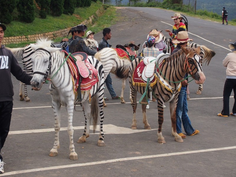 Leo lên đỉnh núi Lang Biang đối với du khách nước ngoài là một trải nghiệm khá thú vị và… mệt. Nhưng phần kỳ lạ với du khách nước ngoài lại là khu vực đậu xe, nơi người dân đã sơn ngựa của họ giống như những con ngựa vằn. Rõ ràng, ngựa vằn giả ít đe dọa du khách hơn ngựa vằn thật.