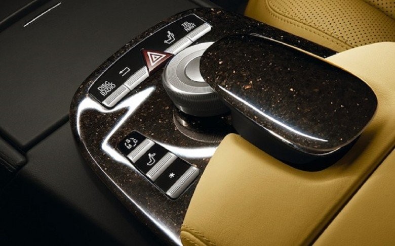 Khi nói đến việc chọn vật liệu bên trong xe, thông thường chúng ta sẽ nghĩ chất liệu vải tổng hợp, hoặc da. Tuy nhiên, Mercedes tăng mức sang trọng cho xe bằng cách sử dụng đá granite lấp lánh.