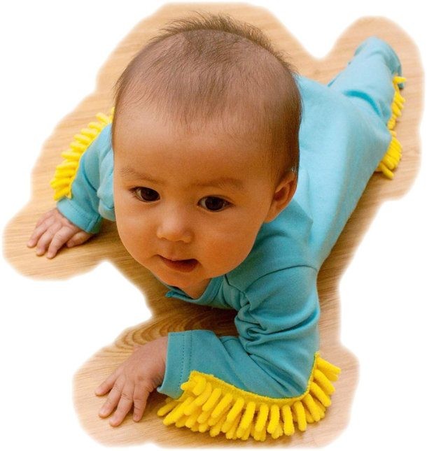 Nghe thật buồn cười nhưng ở Nhật Bản, nó có thật. Những em bé đang độ tuổi tập bò có thể giúp bố mẹ lau nhà thông qua những mảnh lau nhà tích hợp trên khuỷu tay và chân.