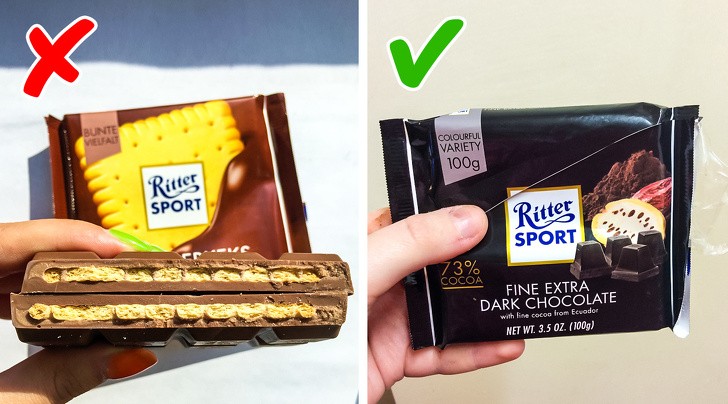 Sô-cô-la cũng là món ăn an toàn trước khi bạn đi ngủ. Đây không phải là sô-cô-la kẹp bơ sữa mà là sô-cô-la đen nguyên chất với 72% ca cao tự nhiên. Thực phẩm này chứa rất nhiều chất chống oxy hóa và đủ chất xơ để cảm thấy no khi không phải tiêu thụ một hàm lượng đường cao. Tuy nhiên, bạn không nên ăn quá 50g sô-cô-la đen mỗi ngày.