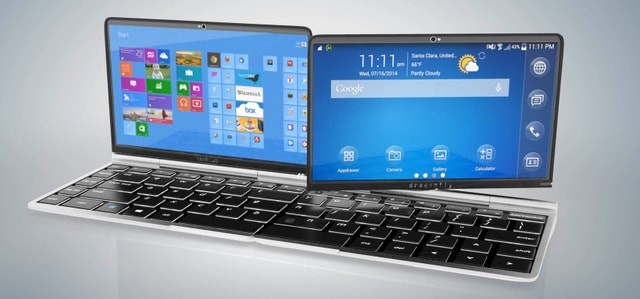 Dragonfly Futurfon nó có thể chuyển đổi thành một máy tính xách tay đôi, với một màn hình chạy Windows và một chiếc chạy Android khác. Đây là thiết bị 3 trong 1 với giá 800 USD, và nó vẫn đang phát triển sau chiến dịch Indiegogo thành công vào năm 2014.