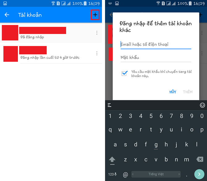 TÍnh năng mới cập nhật này cho phép bạn đăng nhập và chuyển đổi nhanh giữa nhiều tài khoản Messenger trên cùng 1 thiết bị. Để dùng tính năng này, bạn vào phần Cài đặt -> Tài khoản, chọn nút hình dấu "+" ở góc trên bên phải rồi đăng nhập vào tài khoản Messenger mà bạn muốn thêm vào, bạn cũng có thể tùy chọn nhập mật khẩu cho mỗi lần chuyển sang tài khoản này từ 1 tài khoản khác.