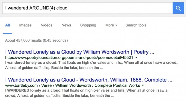 Đặt cụm từ tìm kiếm vào trong dấu ngoặc “ ” là cách đơn giản và hiệu quả nhất để kiếm kết quả chính xác cho cụm từ đó. Đây là một cách tuyệt vời để tìm lời một bài hát khi bạn chỉ biết một câu trong đó.