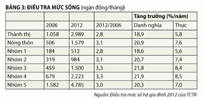 Nếu mức tăng trưởng thu nhập hộ gia đình nêu trên là thực thì có nghĩa là người lao động Việt Nam đã được hưởng lợi rất lớn từ tăng trưởng kinh tế - một sự tăng trưởng có tính bao trùm rất cao. Tuy nhiên, số liệu trong các báo cáo điều tra lao động việc làm cũng của TCTK lại không ủng hộ điều này. Tiền lương thực bình quân của người làm công ăn lương ở nông thôn và thành thị giai đoạn 2007-2015 theo số liệu này chỉ tăng lần lượt là 4,8% và 0,6%/năm, thấp hơn con số tổng thể 5,5%. Những con số này mâu thuẫn với nhau và khác biệt rất lớn so với kết quả trong điều tra mức sống. Điều này đặt ra câu hỏi về tính tin cậy của số liệu thống kê.