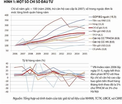 Trong gần một thập kỷ qua, chỉ giữ vàng là có suất sinh lợi bình quân cao hơn lạm phát 1,7% và đầu tư vào căn hộ cao cấp ở TPHCM thì tương đương, trong khi tất cả các kênh còn lại đều thấp hơn lạm phát (hình 1). Điều này có nghĩa là giá trị tài sản ròng khi đầu tư vào các kênh này âm.