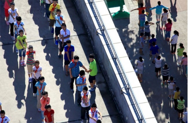 2. Các trường ở Trung Quốc cho học sinh tập thể dục mỗi ngày (không chỉ một lần một ngày) và xếp thành đội hình
