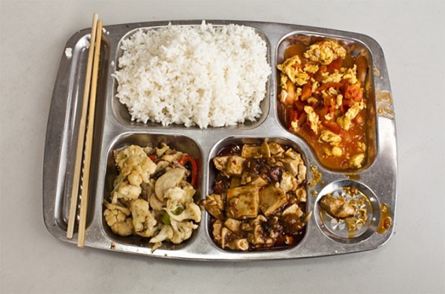 Trong thời gian này, trẻ em ăn tại căng tin (nếu trường nào không có căng-tin, các em sẽ nhận được hộp cơm đặc biệt). Chúng đuổi theo nhau, hét lên, và nô đùa vui vẻ. Các giáo viên ở tất cả các trường đều nhận được bữa trưa miễn phí - và là một bữa ăn ngon. Bữa trưa theo truyền thống có: một món thịt, hai món rau, một ít cơm và một bát súp. Các trường tư thục đắt tiền cung cấp thêm trái cây và sữa chua. Người Trung Quốc là những người ăn uống thịnh soạn và truyền thống này cũng áp dụng cho các trường học. Một số trường tiểu học cũng áp dụng “một giấc ngủ trưa” vài phút sau giờ ăn trưa.