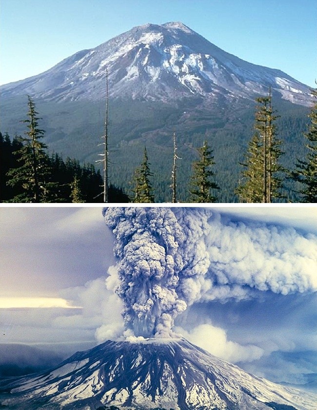 Núi lửa Mount Saint Helens ở Washington tỉnh giấc vào mùa xuân năm 1980. Nó mạnh đến nỗi tạo ra ra một cột khói cao vài chục cây số. Nó cũng gây ra sạt lở đất khổng lồ, trong đó dung nham, đá, và khí nóng đã làm thay đổi khu vực này. Vụ phun trào núi lửa gây thiệt hại nặng nề trong lịch sử Hoa Kỳ, làm 57 người chết.
