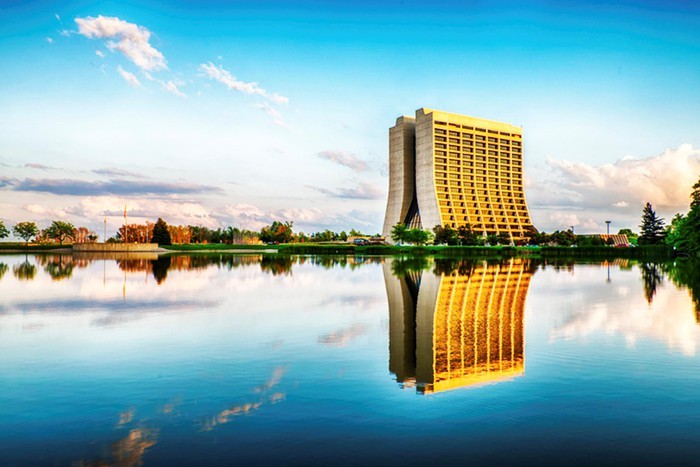 Wilson Hall là tòa nhà trung tâm của Phòng thí nghiệm Gia tốc Quốc gia Fermi ở Illinois, Mỹ. Nó được xây dựng từ năm 1971 đến 1974, từng giành giải thưởng của Hiệp hội Kiến trúc Mỹ. Ảnh: Fermilab.