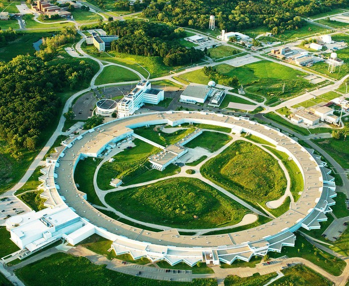 Cơ sở nghiên cứu Nguồn Photon Cao cấp (APS) thuộc Phòng thí nghiệm Quốc gia Argonne ở Illinois, Mỹ, cỗ máy X-quang mạnh mẽ và hiện đại bậc nhất thế giới. Cấu trúc vòng tròn rộng lớn của APS gồm rất nhiều ống kim loại lớn chứa loại tia X năng lượng cao. Ảnh: Flickr.
