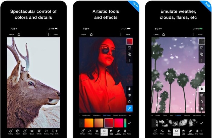 Enlight: Đây là trình chỉnh sửa ảnh tất cả trong một với các công cụ dễ sử dụng giúp làm cho ảnh của bạn trông hoàn hảo hơn. Ứng dụng này có bộ lọc tuyệt vời cùng nhiều tính năng chỉnh sửa, nhiều loại hiệu ứng nghệ thuật đặc biệt và cả công cụ trộn ảnh…