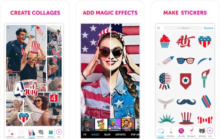 PicsArt Photo Editor & Collage: Đây là một ứng dụng chụp ảnh và chỉnh sửa ảnh tất cả trong một có sẵn các công cụ như hiệu ứng trực tiếp, trình tạo ảnh ghép, trình chỉnh sửa ảnh…Ngoài ra, bạn có thể tạo các hình dán được cá nhân hóa theo phong cách của riêng bạn ngoài việc sử dụng các clip nghệ thuật và các công cụ vẽ sẵn có.