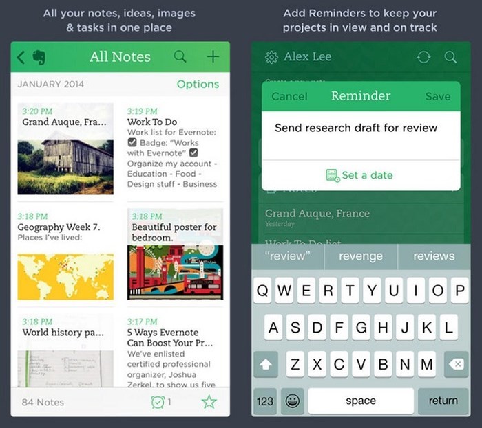 Sử dụng Evernote thay vì Notes: Ứng dụng Notes của Apple dành cho iOS đã trở nên tốt hơn trong những năm gần đây, nhưng Evernote vẫn là cách tốt nhất để tạo các loại ghi chú khác nhau và giữ chúng được sắp xếp trên tất cả các thiết bị của bạn. Với Evernote, bạn có thể tạo ghi chú từ ảnh hoặc văn bản, gắn cờ ghi chú để truy cập lại sau, đặt lời nhắc cho chính mình và gắn thẻ ghi chú của bạn theo nhiều cách khác nhau một cách có tổ chức. Nếu bạn chụp tài liệu và tải lên Evernote, chức năng tìm kiếm trong ứng dụng này thực sự mạnh mẽ. Thậm chí chúng có thể quét các tệp PDF và các tài liệu khác. Evernote đồng bộ trên tất cả các thiết bị - điện thoại, máy tính bảng, máy tính xách tay và máy tính để bàn.