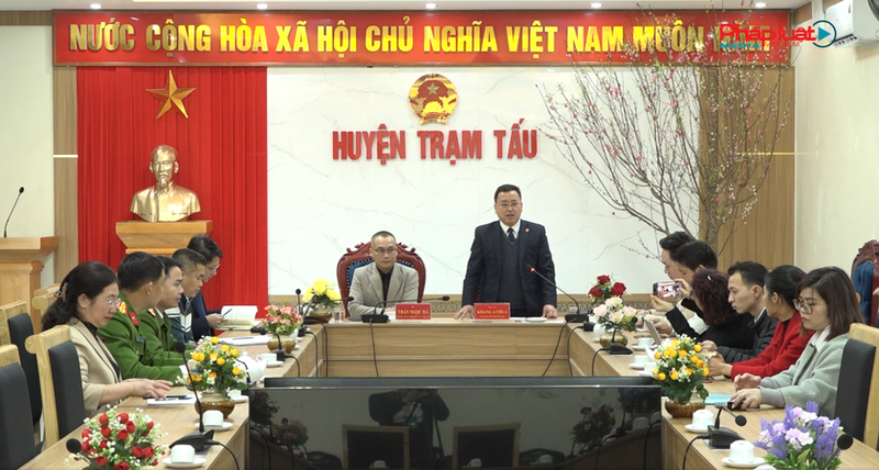 Ông Trần Ngọc Hà - Phó Tổng Biên tập - cùng đoàn công tác Báo Pháp luật Việt Nam làm việc với đại diện lãnh đạo UBND huyện Trạm Tấu.