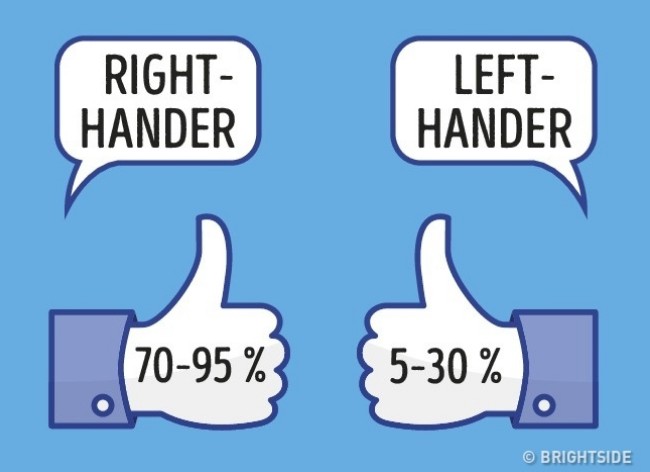 Hầu hết mọi người (70% đến 95%) là thuận tay phải và một thiểu số (5% đến 30%) là thuận tay trái. Một số khác lại thuận cả hai tay.