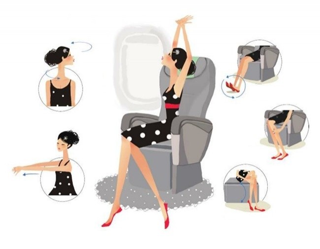 Mẹo: Chọn quần áo hơi rộng cho chuyến bay. Cố gắng vận động nhiều hơn để đảm bảo máu chảy bình thường và ngăn ngừa bất kỳ vấn đề tuần hoàn nào. Bạn nên nâng lên hạ xuống đầu gối và quay bàn chân nhiều lần hoặc làm một vài động tác vặn mình.