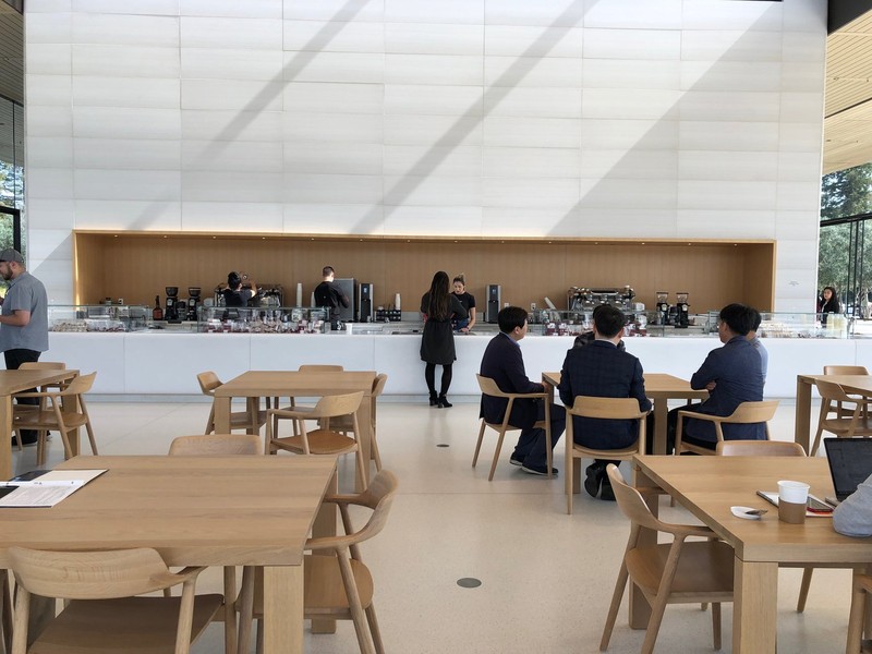 Vào những buổi sáng trong tuần, bạn có thể sẽ gặp một vài nhân viên Apple đang ngồi uống cà phê trong quán cà phê đầy ánh sáng mặt trời còn Wi-Fi thì khá nhanh và ổn định.