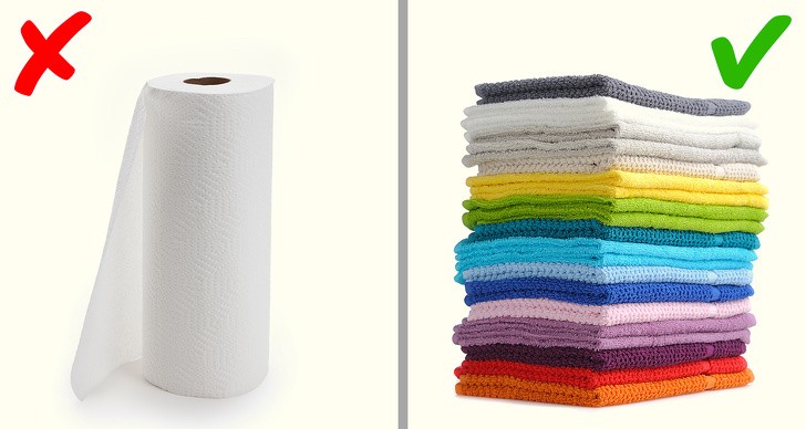 Biến áo phông và khăn tắm cũ của bạn thành giẻ lau để dọn phòng. Điều này giúp tiết kiệm tiền, bảo vệ cây trồng và giảm lượng rác thải giấy. Hiện nay, rác thải đã tràn ngập trong Thái Bình Dương, vì vậy hãy cố gắng sản xuất ít giấy và rác nhất có thể.