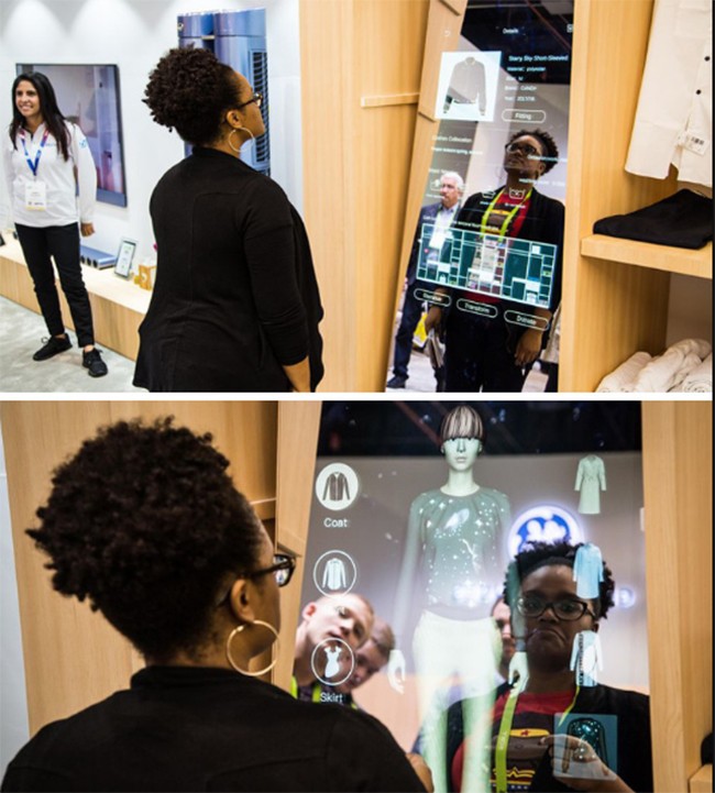 Bạn có ghét việc phải phối đồ vào mỗi buổi sáng? Chiếc gương thông minh có tên là Haier sẽ làm điều đó cho bạn. Lúc đầu, bạn cần phải nhập tất cả quần áo vào cơ sở dữ liệu của gương bằng cách cài đặt một con chip đặc biệt lên tất cả các đồ vật trong tủ quần áo của bạn. Sau đó, gương sẽ có thể tạo ra nhiều bộ quần áo khác nhau. Ngoài ra, nó có thể giúp bạn tìm thấy nơi bạn để chiếc áo len yêu thích và đưa ra các cách giặt từng đồ trong tủ quần áo của bạn.