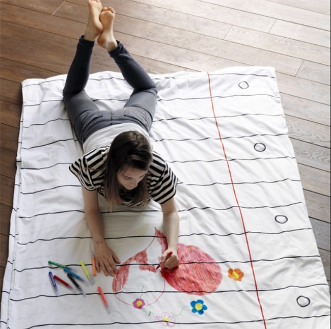 Đây là một vật dụng hoàn hảo cho những gia đình có trẻ nhỏ. Sau khi vẽ trên vỏ chăn, những “dấu vết” này sẽ được giặt sạch, xóa sạch, và sẵn sàng cho các tác phẩm tiếp theo.