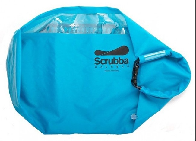 Túi giặt Scrubba là một món đồ nhỏ nhưng vô cùng hữu ích cho những chuyến đi dài. Có những rãnh đặc biệt bên trong giúp rửa sạch mọi vết bẩn và vết ố trên quần áo của bạn. Tất cả những gì bạn cần làm là đặt quần áo vào túi, đổ một ít nước vào túi và thêm bột giặt. Túi kín hơi và nên được "xoa bóp" bằng tay để giặt quần áo đúng cách.