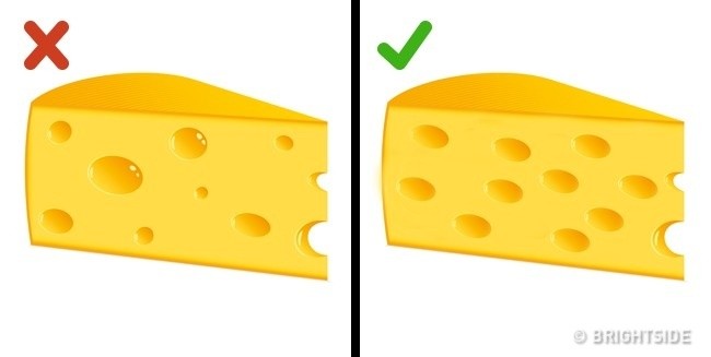 Khi mua pho mát cứng, hãy chú ý đến màu sắc, lỗ hổng và kết cấu: hãy chọn loại đồng nhất và không có vỏ màu trắng; các lỗ phải được phân bố đều trên toàn bộ sản phẩm; nếu pho mát không khôi phục lại hình dáng của nó sau khi bạn ấn nhẹ, tốt hơn là không lựa chọn nó.
