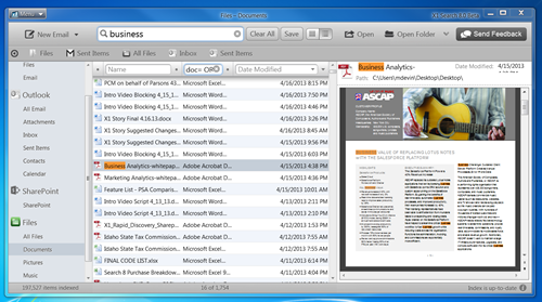 X1 Search đã trở lại, và "lợi hại hơn xưa" cho máy tính bàn. Công cụ này hiển thị kết quả tìm kiếm trên máy tính, trong các thư mục chia sẻ trên mạng, trong email, SharePoint và cả từ những nguồn lưu trữ đám mây như Box và OneDrive. Hỗ trợ tìm kiếm gần đúng và loại trừ (boolean and proximity search) là một bước tiến lớn so với chỉ tìm kiếm chỉ dựa trên từ khoá như đa số tính năng tìm kiếm thông thường. Kết quả từ nhiều nguồn được ứng dụng này hợp nhất lại trong một giao diện đơn rõ ràng, và hiển thị kết quả đã được đánh chỉ mục ngay khi bạn nhập ký tự. Quan trọng hơn là X1 Search cho bạn xem trước nội dung tập tin, cả tập tin đính kèm trong email, với hơn 500 loại định dạng tập tin mà nó có hỗ trợ.