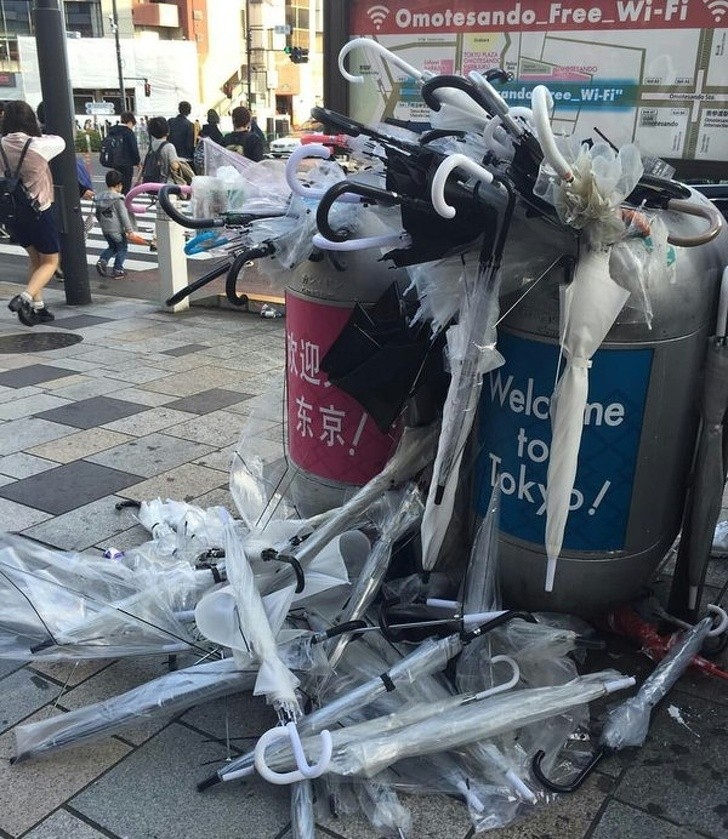 Ô dùng một lần rất phổ biến ở Nhật Bản. Chúng rất rẻ nên không cần phải lo lắng nếu chúng hỏng. Do điều kiện thời tiết khắc nghiệt nên người Nhật thường xuyên che ô. Bạn có thể dễ dàng nhìn thấy đống ô dù bằng nhựa đã qua sử dụng gần một trạm xe buýt hay tàu điện ngầm nào đó.