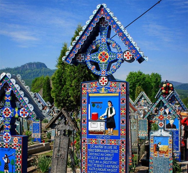 Nghĩa trang vui vẻ nhất trên thế giới có tên là Cimitirul Vessel và nó nằm ở Romania. Ở đây, người dân xây mộ cho chính mình từ khi họ còn sống.