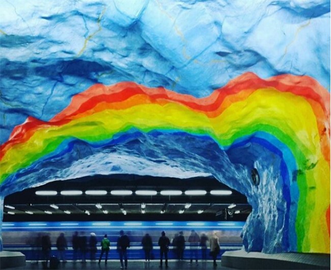 Ga tàu điện ngầm Stockholm là một trong những ga không bình thường nhất trên thế giới. Nó trông vừa giống như một hang động vừa giống như một bảo tàng. Tại một trong các trạm, bạn có thể thấy đôi ủng của người khổng lồ trên trần nhà, ở các trạm khác bạn lại thấy nó được sơn như cầu vồng, một số trạm lại như triển lãm. Ga tàu điện ngầm này là một trong những phòng trưng bày nghệ thuật dài nhất thế giới.