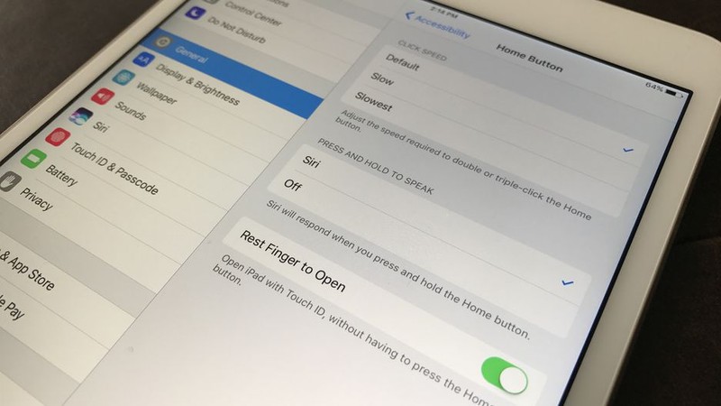 Với phiên bản iOS 10 trở lên. Ngoài việc bạn có thể ấn nút Home để mở iPad, bạn chỉ cần để tay nhẹ lên nút Home mà không cần dùng lực ấn. Vào mục Settings > General > Accessibility > Home Button để bật chức năng này.