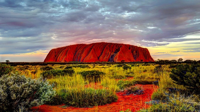 Uluru là một ngọn núi đá khổng lồ màu cam nâu, có hình hình bầu dục, hình thành từ 680 triệu năm trước đây, không chỉ là biểu tượng ở Australia mà còn là điểm du lịch hấp dẫn của thế giới.