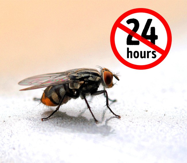 Ruồi trưởng thành không sống trong 24 giờ, mà là khoảng 2-4 tuần. Chúng cũng có thể ngủ đông trong suốt mùa đông.