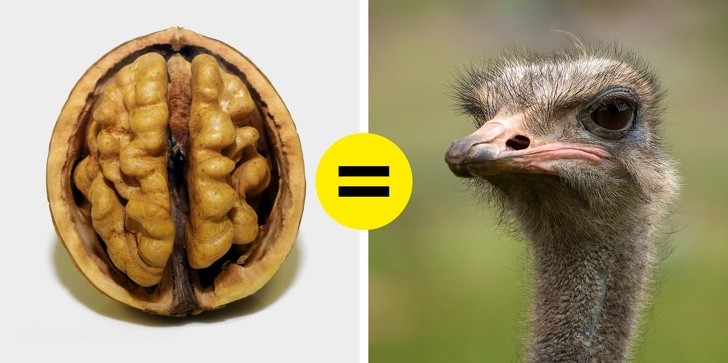 Đà điểu có đôi mắt to nhất trong vương quốc động vật. Mắt chúng quá to đến nỗi chỉ có một bộ não với kích thước quả óc chó mới có thể vừa vặn trong hộp sọ của chúng. Khối lượng của một bộ não đà điểu thậm chí nhỏ hơn 2 lần so với khối lượng của mắt.