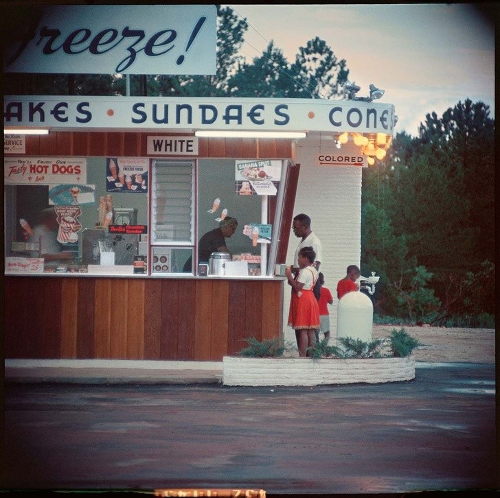 10. Một gia đình người Mỹ gốc Phi mua kem từ một gian hàng biệt lập ở Alabama, 1956
