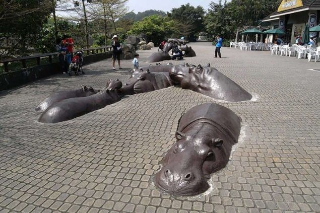 14. Hippo Sculptures: hà mã đáng yêu biết lội đất