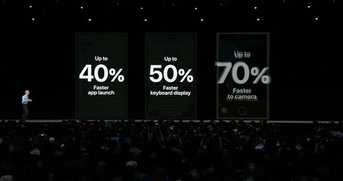 1. Apple khẳng định rằng iOS 12 sẽ hoạt động rất tốt trên các thiết bị đời cũ. Điển hình như các ứng dụng sẽ được mở nhanh hơn 40% trên iPhone 6S khi sử dụng phần mềm mới này.