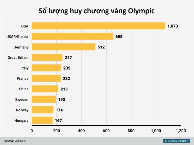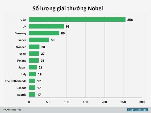 Mỹ có số người đạt giải Nobel và số huy chương vàng Olympic nhiều nhất trên thế giới.