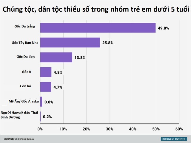 Mỹ là quốc gia đa dạng chủng tộc, năm 2014 đa số trẻ em không phải là người da trắng