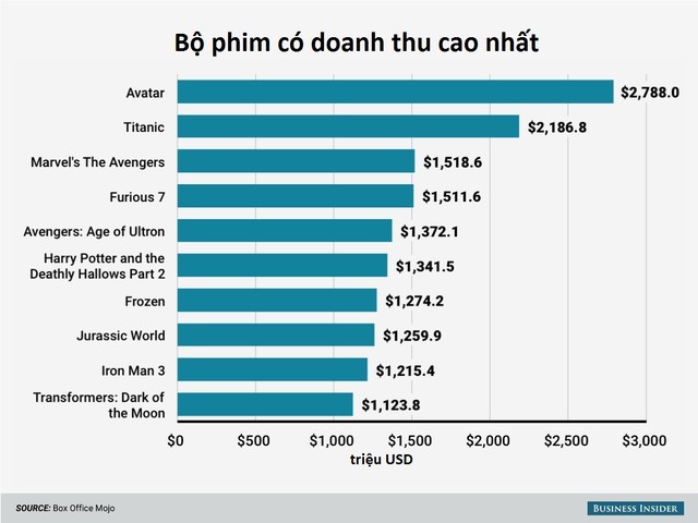 9 trên 10 bộ phim có doanh thu lớn nhất rõ ràng là phim Mỹ
