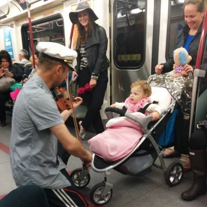 11. Chàng trai này chơi violin chỉ để dỗ bé con nín khóc