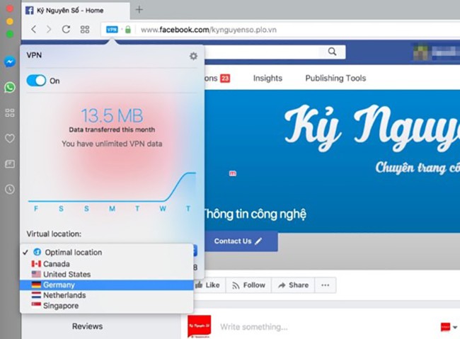 Một khi chế độ VPN được kích hoạt, người dùng có thể thoải mái truy cập vào Facebook cũng như các trang web bị giới hạn khu vực địa lý và độ tuổi.