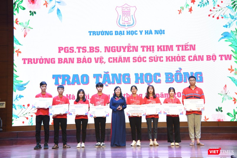Tại cuộc giao lưu, cựu sinh viên Trường Đại học Y Hà Nội - PGS.TS. Nguyễn Thị Kim Tiến, Trưởng Ban Bảo vệ chăm sóc sức khỏe cán bộ Trung ương, nguyên Bộ trưởng Bộ Y tế – đã trao tặng 8 suất học bổng từ tiền cá nhân của bà cho các sinh viên nghèo vượt khó. Năm ngoái, bà cũng đã trao 5 suất học bổng cho sinh viên của Trường.