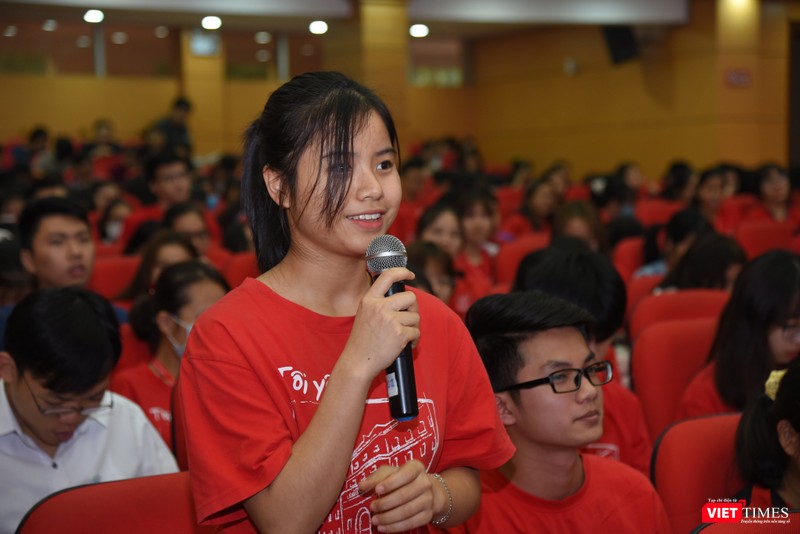 Các sinh viên giao lưu với bà Thái Hương và PGS.TS. Nguyễn Thị Kim Tiến |