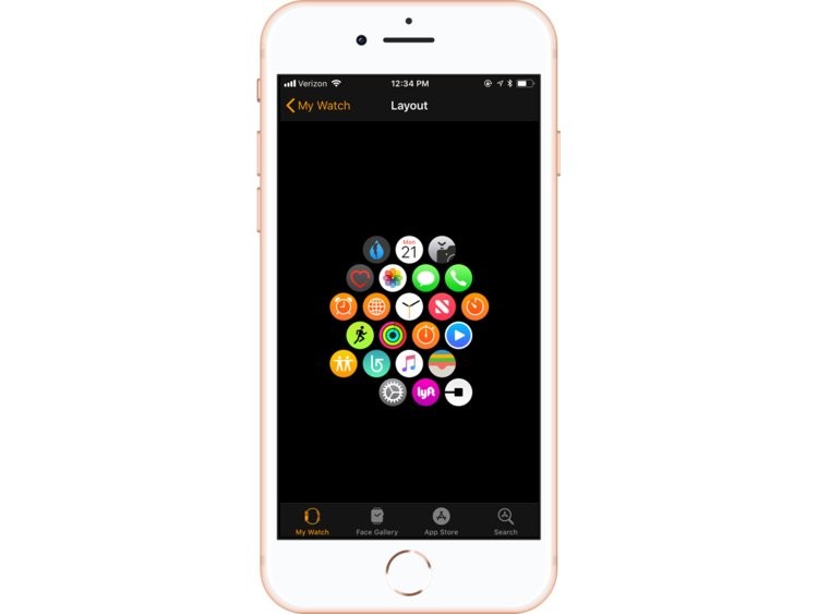 Nhưng nếu bạn muốn thay đổi vị trí xuất hiện trên màn hình, bạn chỉ cần truy cập ứng dụng Watch và nhấp vào "App Layout". Sau đó, ấn giữ vào biểu tượng ứng dụng để di chuyển đến vị trí mong muốn.