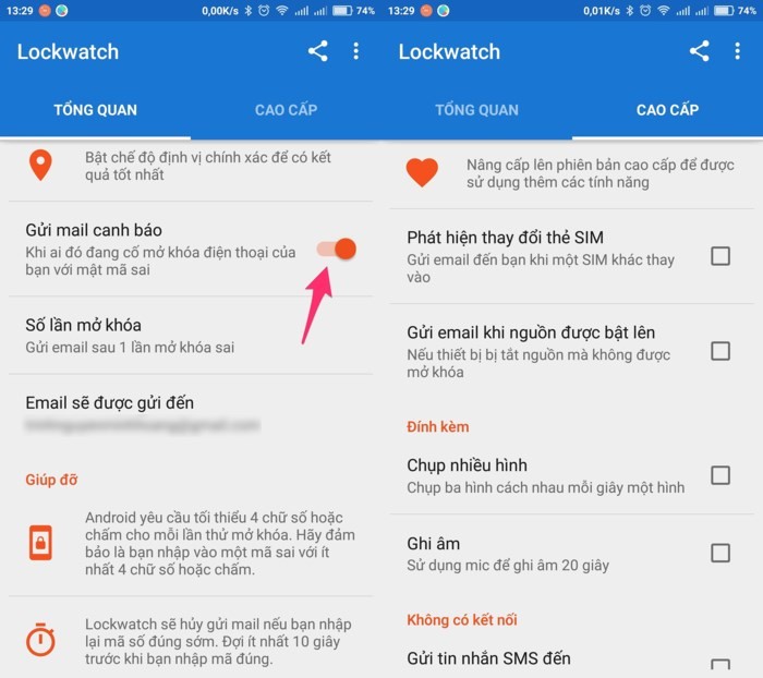 - Bước 3: Mặc định, ứng dụng sẽ gửi thông tin của kẻ trộm đến email khi họ mở khóa sai một lần. Nếu muốn điều chỉnh lại thông số trên, bạn chỉ cần bấm vào mục Number of unlock attempts (số lần mở khóa). Lưu ý, email có thể bị đưa vào thư mục Spam, do đó, bạn cần kiểm tra thật kĩ mọi thứ và đánh dấu email là Not Spam (không phải thư rác).